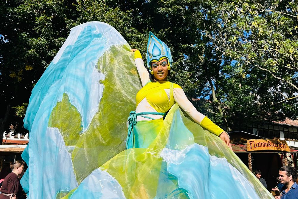Ein großer Markt lädt zum Schlendern ein, während Schenken und Tavernen euch mit Wein und Gerstensaft versorgen. Lasst euch treiben, entdeckt Handwerk und Handel vergangener Zeiten und genießt die besondere Atmosphäre. Die Spielleut Ohrenpeyn sorgen mit historischen Instrumenten für die passende Klangkulisse, während beim Ritterturnier zu Pferde – Asgard für Spannung gesorgt ist. Midgards Feuerbund zeigt eindrucksvolle Ritterkämpfe und gewährt Einblicke in das Lagerleben. Das Stelzentheater Hochkant begeistert mit besonderen Darbietungen über den Köpfen der Besucher. Die Flugträumer sind den ganzen Tag über zu erleben und setzen in den Abendstunden mit ihrer Feuershow besondere Akzente.